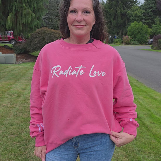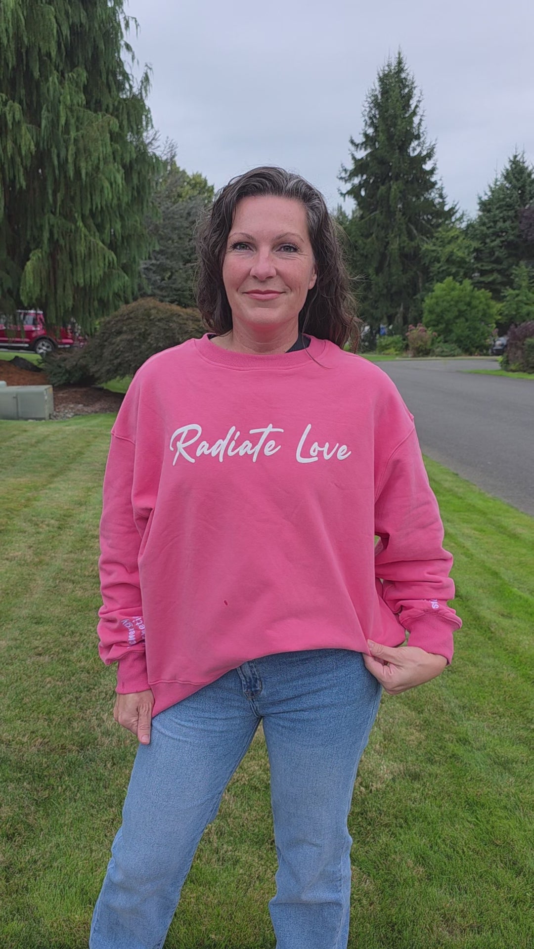 - Front: Puff print “Radiate Love” - a reminder to lead with light.